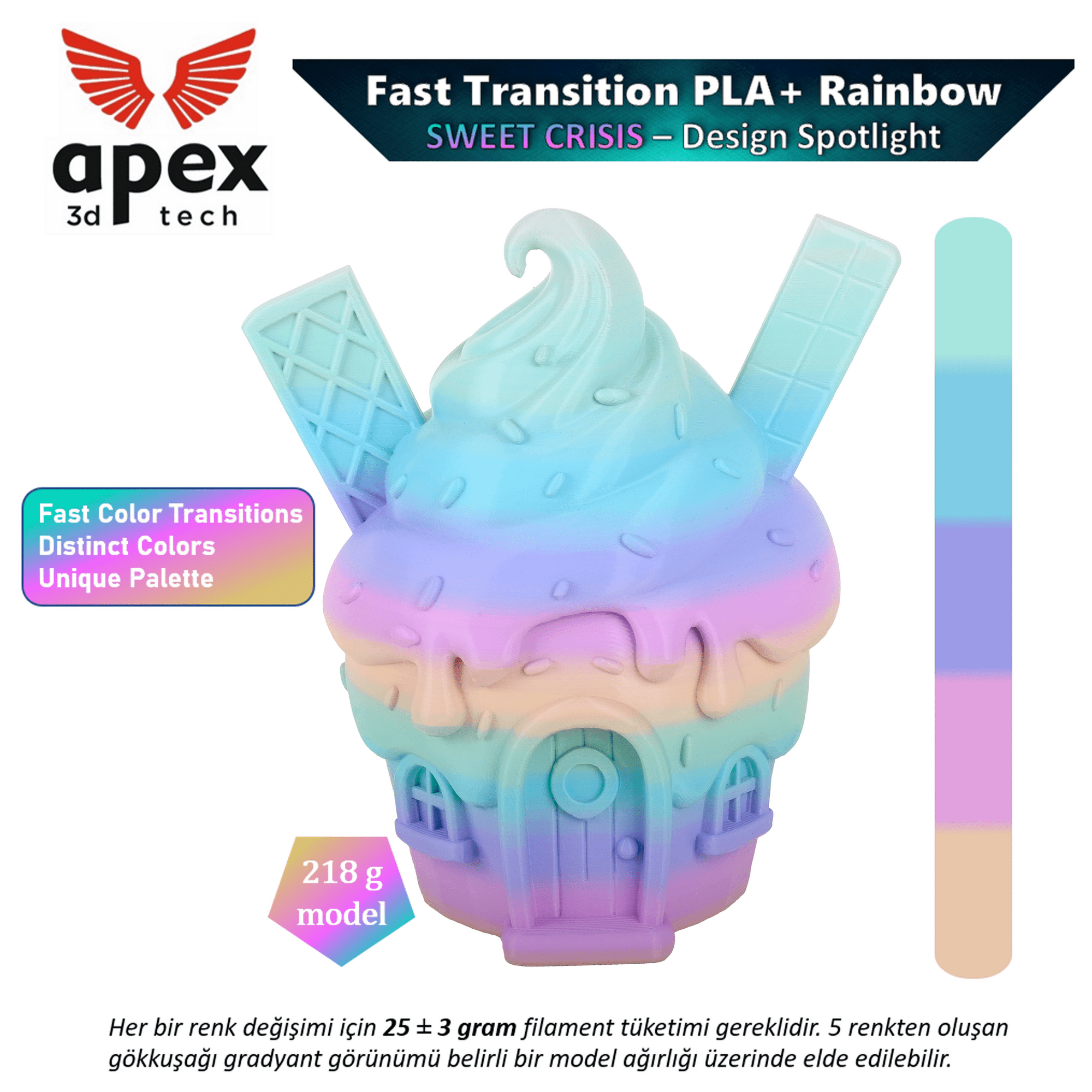Apex3D Tech Gökkuşağı PLA+ Filament - Tatlı Krizi, 1kg, 1.75mm